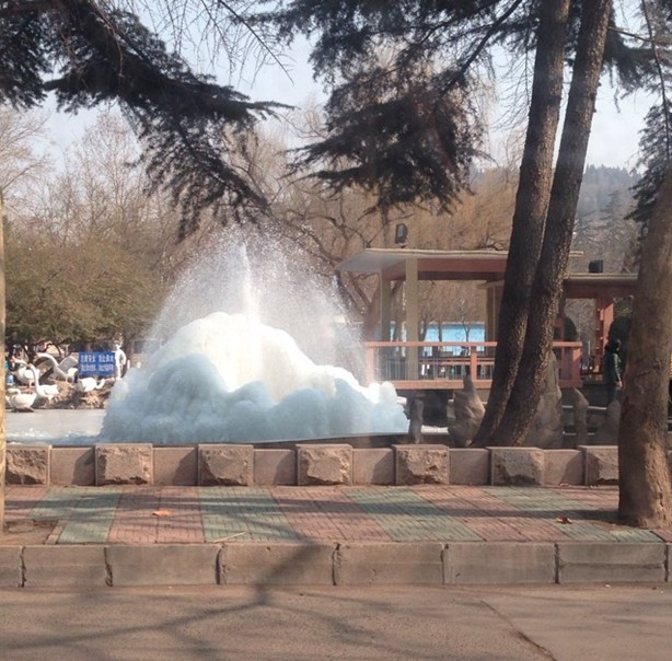 山東噴泉上凍形成美麗景象